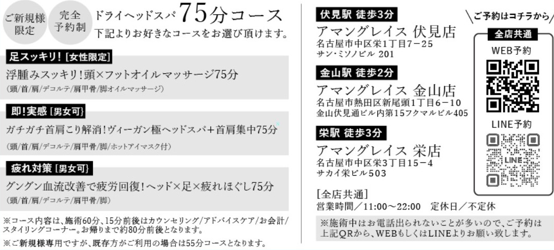※当グループが初めての新規様が75分コース、既存客は、55分コースとなります。